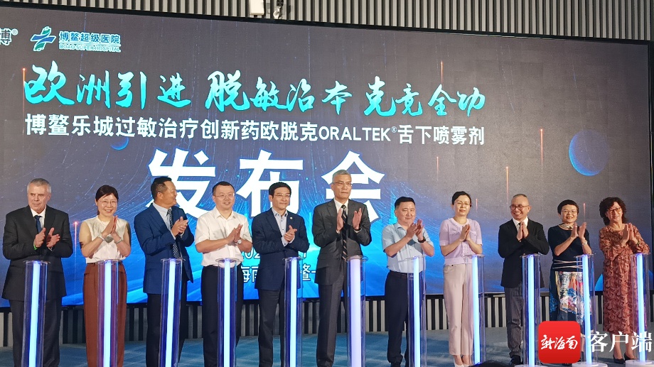 博鳌乐城过敏治疗创新药欧脱克ORALTEK®舌下喷雾剂发布会。记者 苏桂除 摄 近年来,随着环境变化和生活方式的改变,过敏性疾病发病率呈逐年上升的趋势,世界卫生组织把过敏性疾病列为21世纪需要重点研究和防治的三大疾病之一。 相关数据显示,我国约有4亿人患有过敏性疾病,但受制于各种因素,脱敏治疗产品种类少,患者接受程度不高。