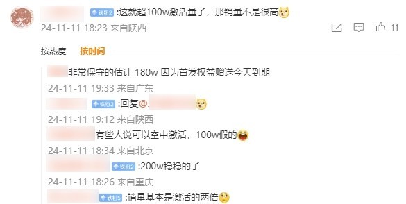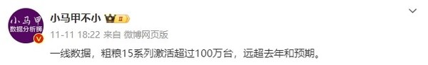 小米15系列 对此,有网友评论称,“这就超100万激活量了,那销量不是很高?”其他网友则回复“非常保守地估计,销量应该达到了180万台”。还有人认为销量应该是激活量的两倍,达到200万台“稳稳的”。